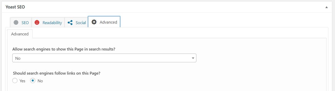 Top Tip: Make sure the thank you page is set to no index, otherwise people will be able to find the thank you page in Google’s search results. If you are using YoastSEO there is a setting to no index a page ;)